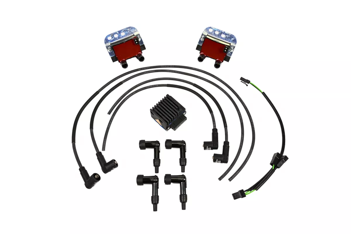 Lieferumfang: Q-Tech Zündsteuergerät, 2x Zündspule mit Halter, 4x Zündkabel, 4x Zündkerzenstecher, Montageanleitung.