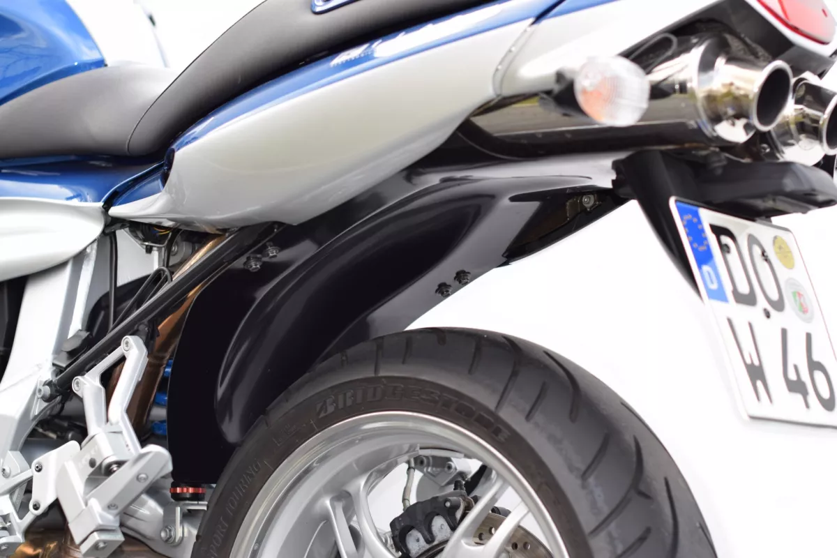 Der Spitzschutz verkleidet vom Federbein hinten bis Ende Endschalldämpfer und hält somit Ihre BMW unter der Sitzbank sauber. Leichte Montage an original Haltepunkten, Anbauanleitung liegt bei.