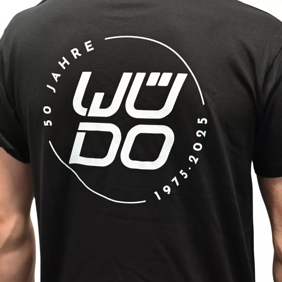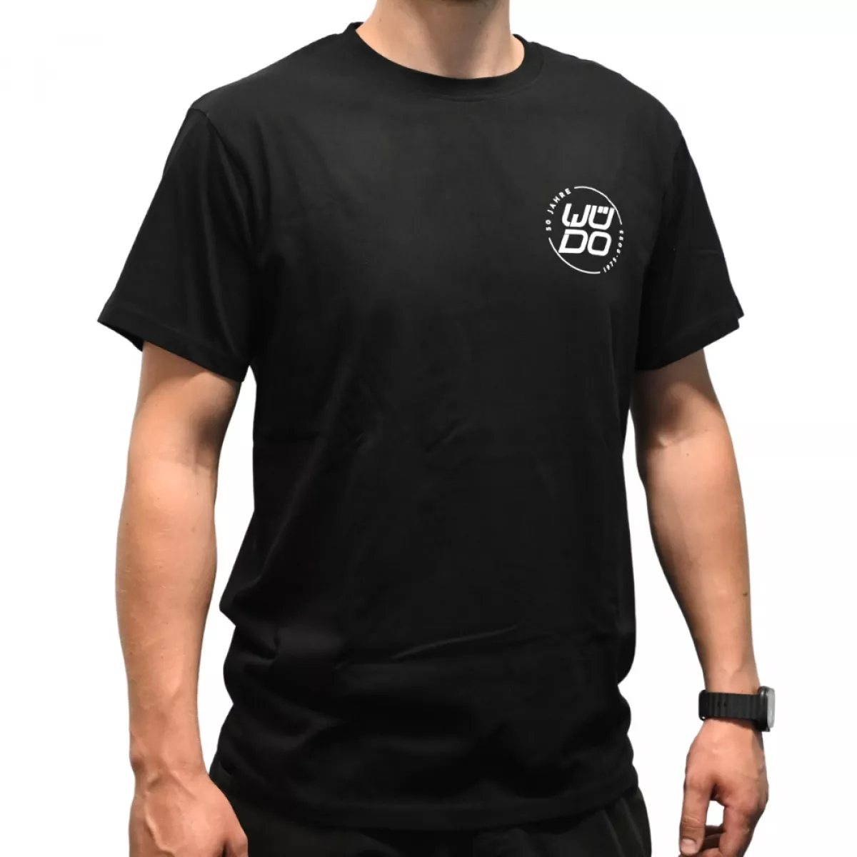 Anlässlich unseres 50-jährigen Firmenjubiläums präsentieren wir unser hochwertiges T-Shirt. Das WÜDO-Logo ist in Weiß auf schwarzem Stoff sowohl auf der Brust als auch auf dem Rücken aufgedruckt.
