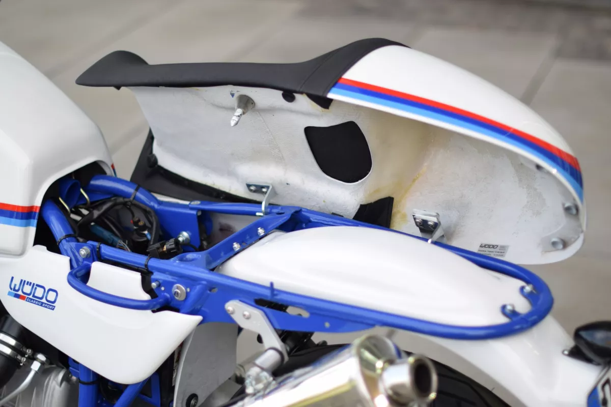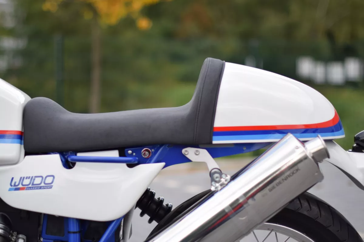 WÜDO Einzelsitzbank "Classic Sport" für alle BMW R80R und R100R mit WÜDO Rahmenheck