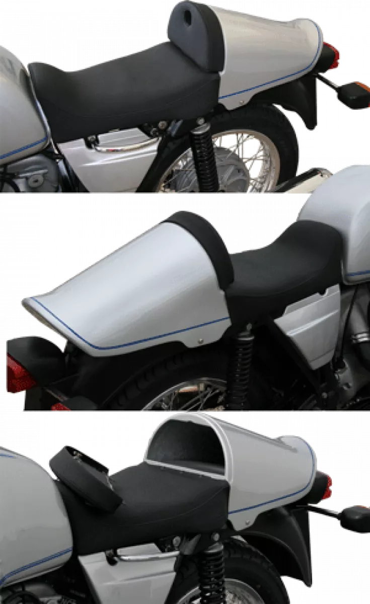 Sie wird vorne durch eine an der Bodenplatte integrierten Halterung und hinten mit zwei seitlichen Schrauben fest montiert. Eine Demontage kann bei Bedarf (wie z.B. beim Batteriewechsel) schnell erfolgen. Da die Sitzbank direkt auf dem Rahmen aufliegt, wird eine geringere Sitzhöhe erreicht.