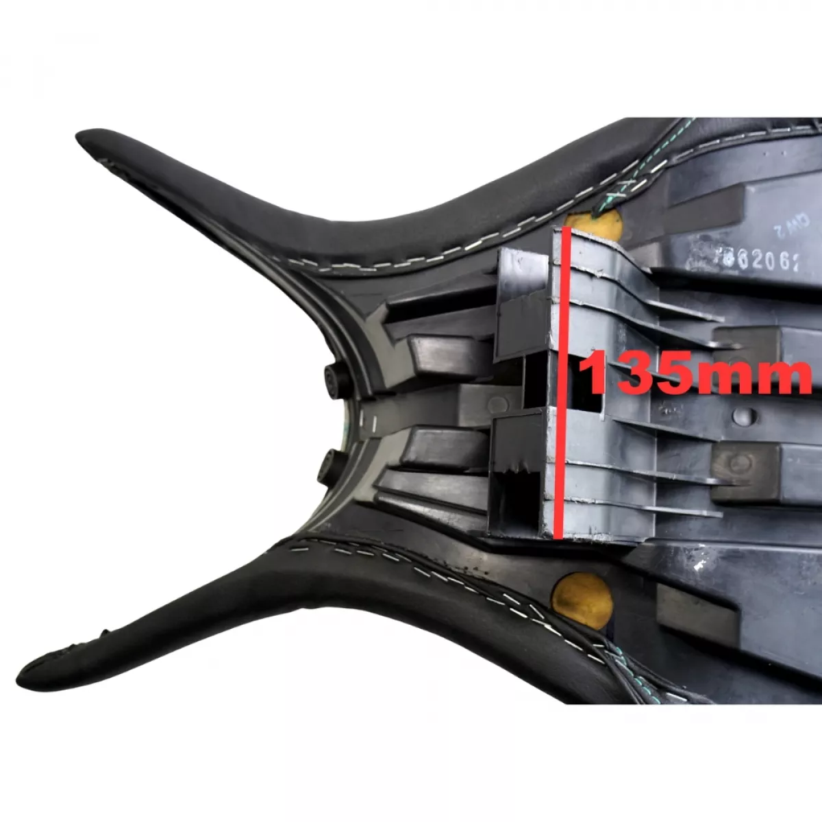 Die Sitzfläche ist im vorderen Bereich leicht angehoben und komfortabler gepolstert, was ein starkes nach vorne Rutschen beim Bremsen verhindert. Zudem wurde der Soziussitzbereich um ca. 3 cm nach vorne verlegt,